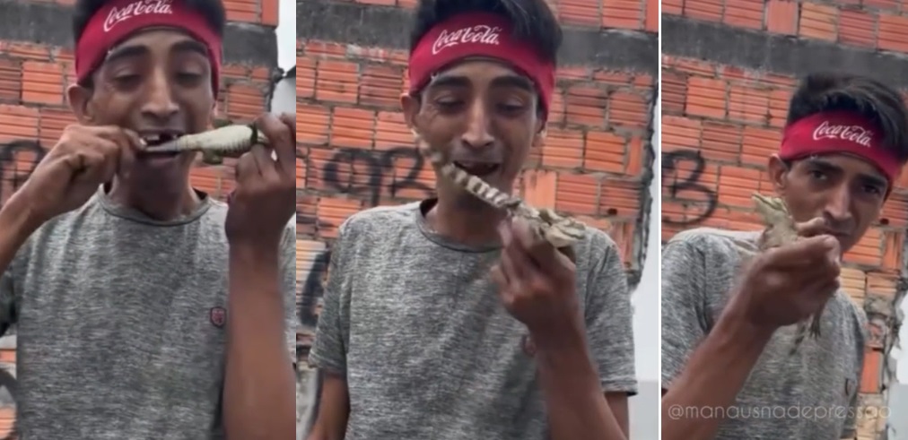 Vídeo: homem é filmado com filhote de jacaré na boca em Manaus