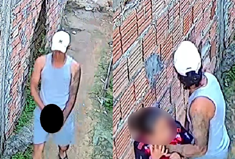 Nas imagens, ele desce o beco já mexendo na própria bermuda e depois retira o próprio pênis para fora. É quando ele agarra a menina por trás, ela se assusta, mas consegue fugir.