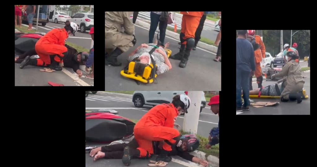 Um motoqueiro atropelou na tarde desta terça-feira (30) uma idosa que tentava atravessar a Avenida Coronel Teixeira na Ponta Negra, e os dois ficaram feridos no chão.