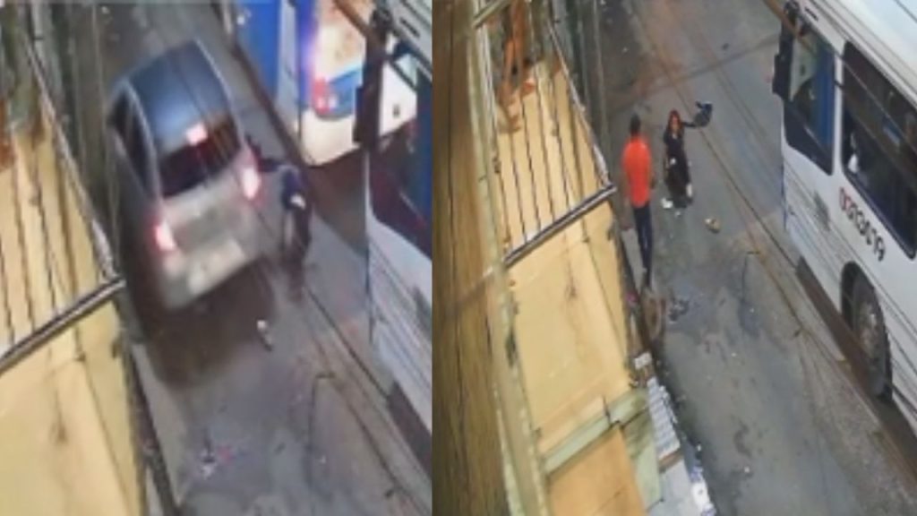 No vídeo, a jovem desce de um ônibus e, sem olhar para os dois lados, atravessa pela frente do coletivo. Nesse momento, ela é atingida por um carro que passava pela via e acaba sendo derrubada.
