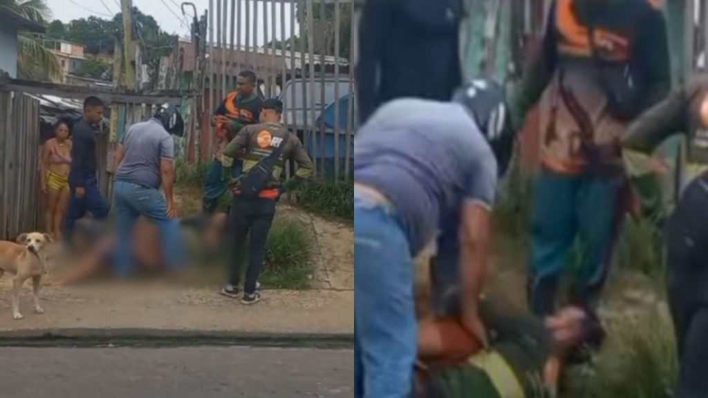 Um vídeo que circula nas redes sociais mostra o momento em que o homem é dominado com um golpe conhecido como “gravata”. Durante a gravação, a pessoa que filma faz comentários e até brinca com a situação enquanto o suspeito é segurado pelos moradores.