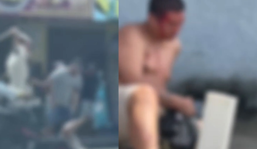 A imagem dele levando pauladas e depois desnorteado no chão, ao lado de um policial, mostra o estrago que fizeram na cara dele.