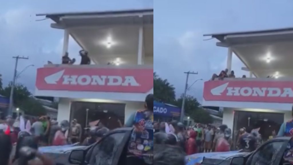 Na rua, havia muitas pessoas acompanhando a festa, incluindo famílias e crianças. O objeto foi jogado em direção à multidão e poderia ter causado ferimentos.