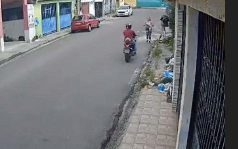 Um assalto registrado por câmeras de segurança ocorreu nesta terça-feira (27) no bairro São José 1, Zona Leste de Manaus. A vítima, uma mulher que ainda não foi identificada, teve seu aparelho celular roubado em via pública por um criminoso que agiu em uma motocicleta.