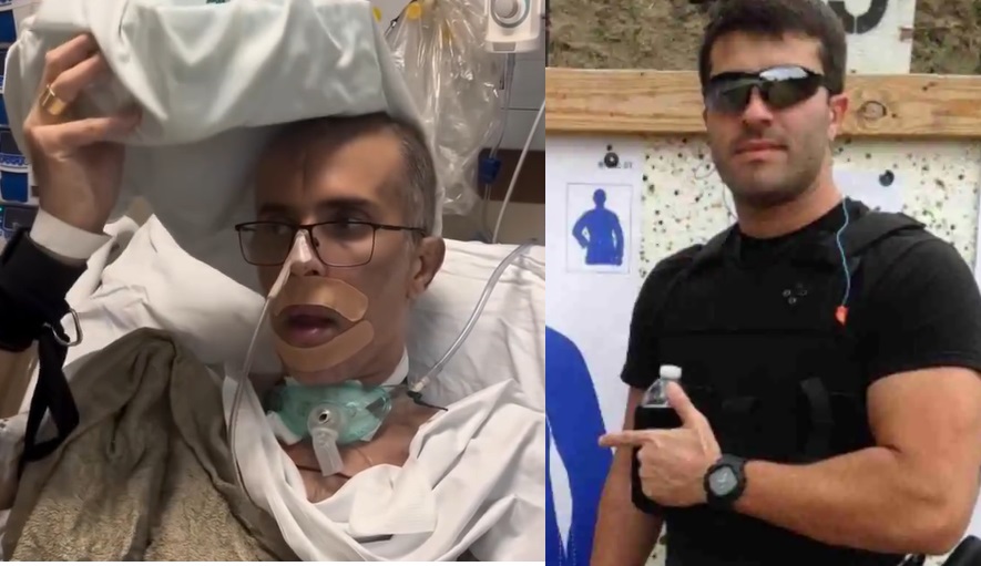 Ele perdeu 40% da estrutura craniana. Ele mexe braços e pernas. “Cada pequeno movimento é uma vitória. A gente acredita que ele vai voltar”, disse a esposa, emocionada.