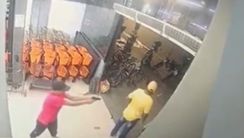 A tentativa de homicídio ocorreu no supermercado em Belém, no Pará. Após ver que a arma falhou, o sargento consegue reagir e entrar em luta corporal.