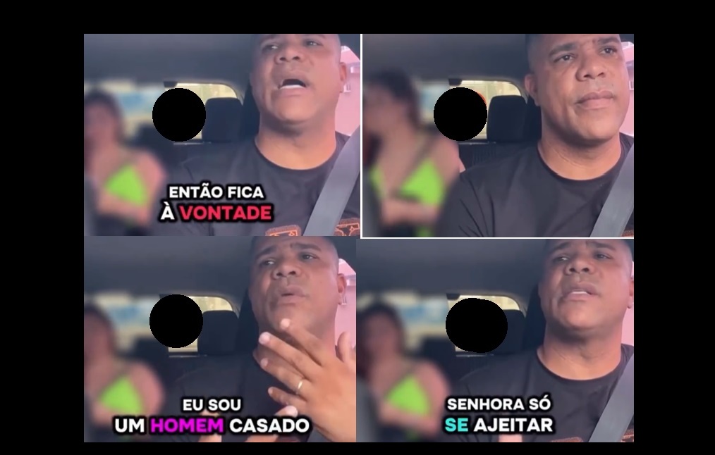 A mulher argumenta que já “fez gracinhas” com outros motoristas, mas ele diz que não ia ceder, que é casado e “já viu de tudo;” em 10 anos de aplicativo.