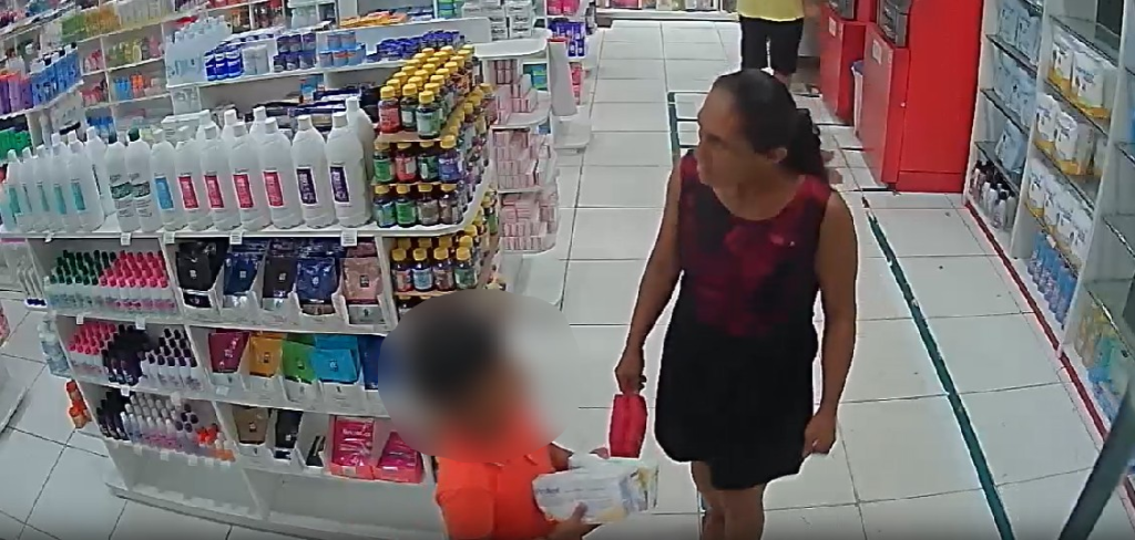 Vídeo: Mulher é flagrada ensinando cr1anç@ a furt@r em drogaria na Zona Leste de Manaus
