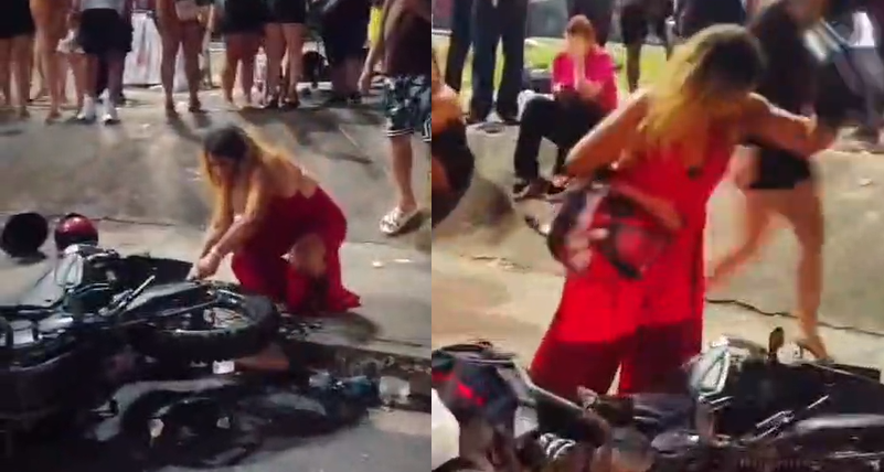 Uma briga de grandes proporções marcou a saída do show do cantor Pablo, na noite deste sábado (21), na Arena da Amazônia, em Manaus. Um vídeo que circula nas redes sociais mostra o momento em que uma mulher, aparentemente revoltada, fura o pneu de uma motocicleta que estava caída no chão.