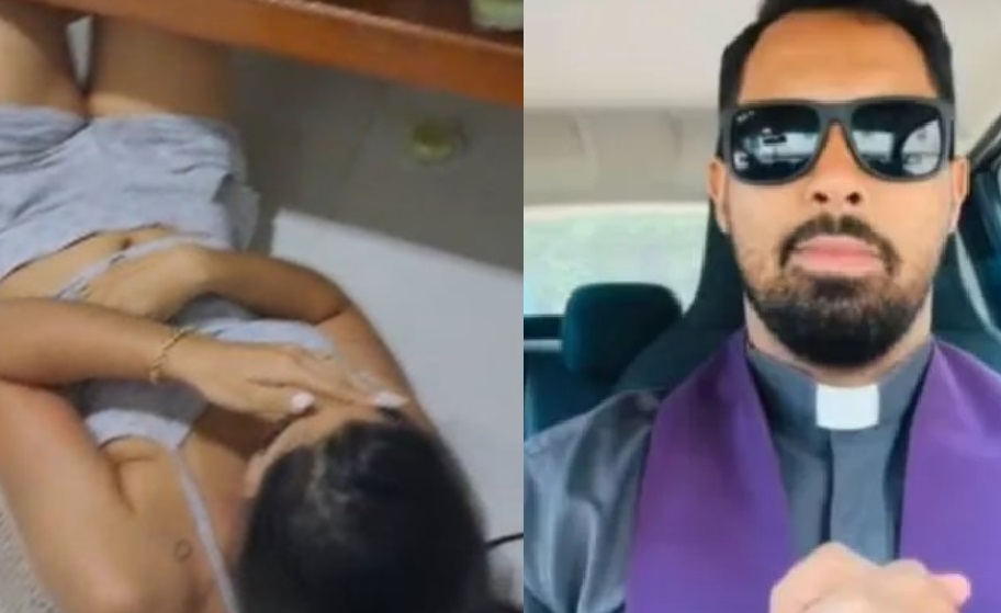 Disse que estava pegando a mulher do próximo, apesar do flagra no banheiro. “Ontem à tarde, ela perguntou se poderia ir na casa, naquele quarto que fica lá fora, trocar de roupa, porque ela atuou de manhã e ela queria trocar de roupa, aí eu falei que sim”, diz o sacerdote.