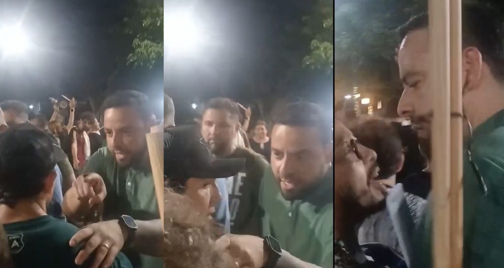 No local os professores disseram que o secretário é um “covarde”, e aparecem enfrentando a violência do secretário de Segurança.