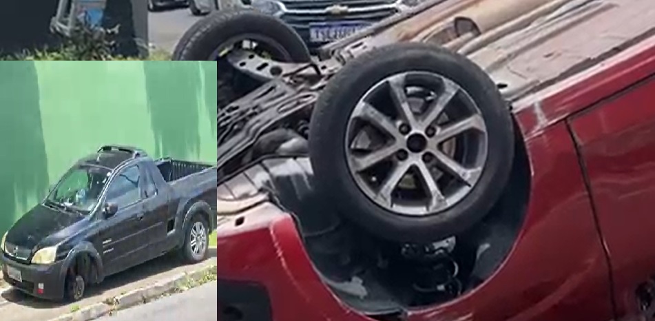 A roda de uma picape solta que atingiu um Fiat Mobi fez o veículo atingido capotar nesta quinta-feira (9), em Manaus. Dentro do veículo capotado estavam uma idosa e a filha dela.