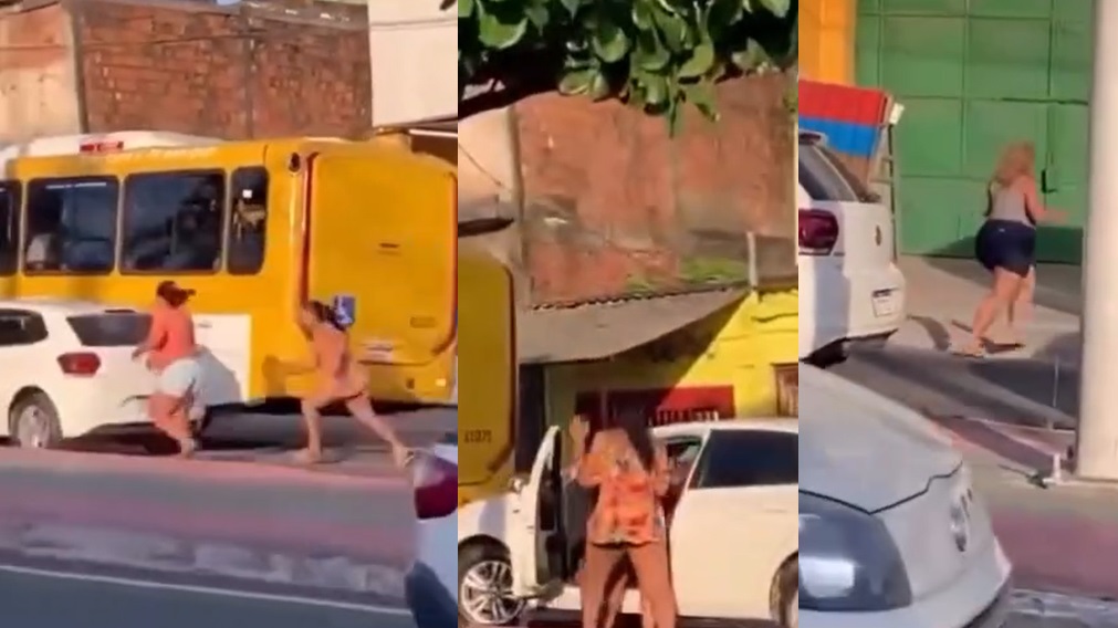 Pior é que levou a amiga junto, conseguiu parar o veículo mas a amante foi mais esperar e fugiu pelo outro lado. Um homem chega a chamar a amante de amante. “Valei-me a mulher saindo pelo outro lado correndo kkkkkkk”, postou um internauta.