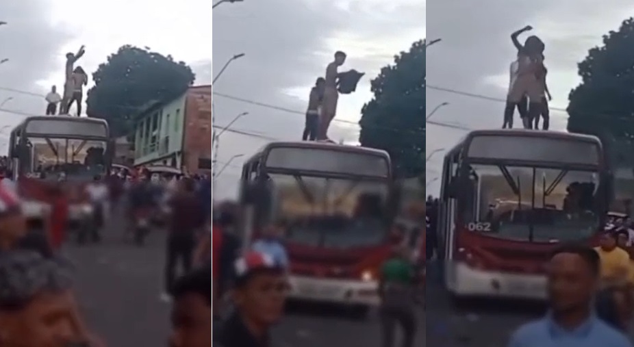 Não se sabe quando e como eles subiram no ônibus, e nem a identidade deles, mas as imagens mostra o trio dançando sobre o veículo e dezenas de pessoas olhando.