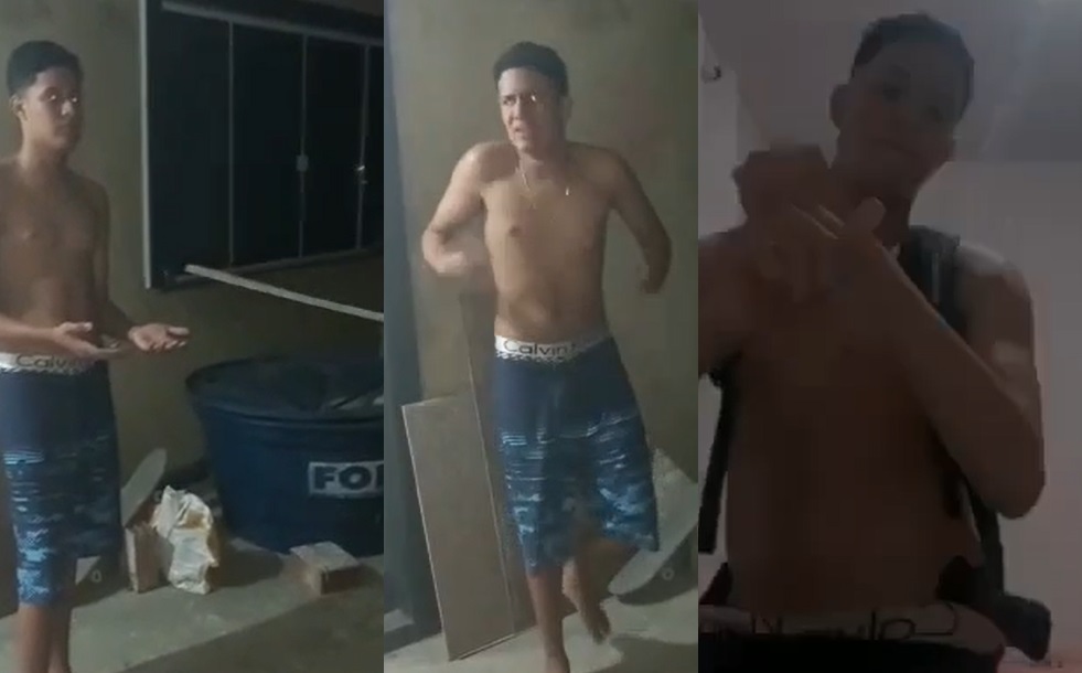 Uma surra de ripadas foi compartilhada nas redes sociais por um pai, neste sábado (28), após o homem ficar com raiva de ver o filho fazer dancinha com o armamento dele para se exibir e conquistar uma novinha.