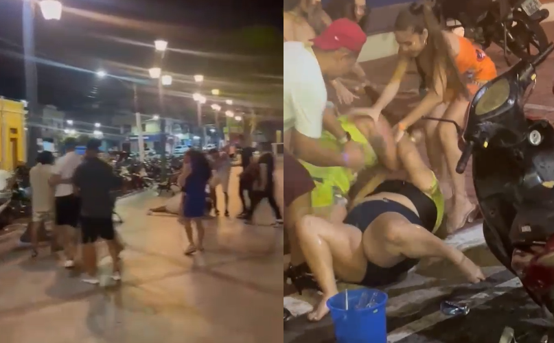 Em outra cena, a violência se dá entre duas mulheres, que, segundo informações que acompanharam os vídeos, estariam em conflito por ciúmes do mesmo parceiro. O clima geral, de acordo com os registros, foi de grande desordem, com excesso de bebida alcoólica e agitações por toda parte.